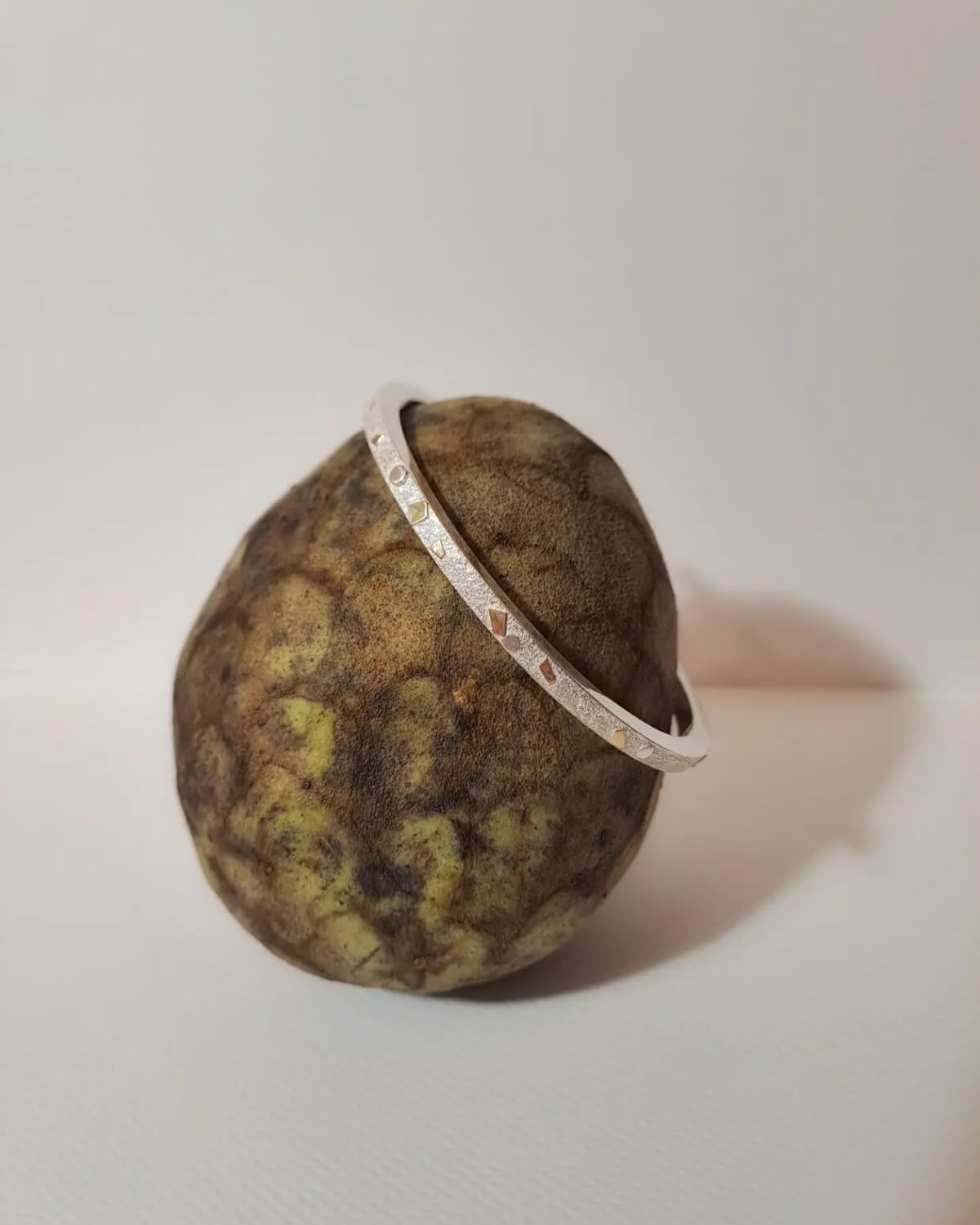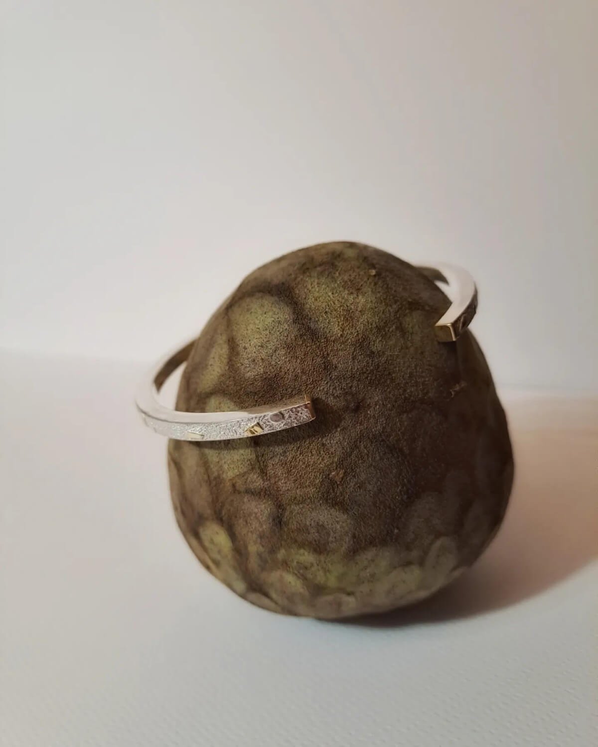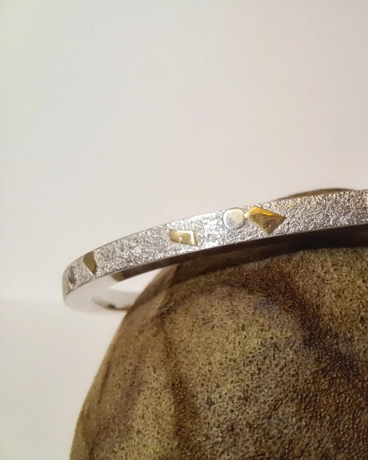 Brazalete fuzing con planchas de oro 18k en los extremos. Precio bajo consulta.
