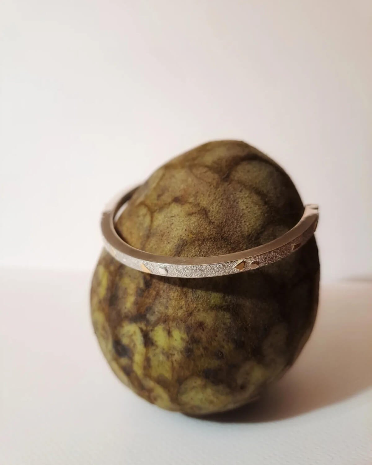 Los caminos de la vida, como dice una famosa canción, rara vez se parecen a lo que soñamos en la niñez. Cambian, se bifurcan. Nos trasladan hacia tierras lejanas donde, entre dificultades y pequeños logros cotidianos, nuevos brillantes horizontes nos recuerdan por qué seguimos avanzando. Esta colección es un reflejo de ese viaje — mi viaje, el suyo. Cada joya nace sin la intención de repetirse, como las historias que nos moldean. Sus formas guardan las huellas de la carretera recorrida y se plasman en nuestra más íntima y secreta memoria. Las joyas de esta colección son unisex y, por su naturaleza irrepetible, cada modelo puede personalizarse a gusto, tanto en la textura como en el material.