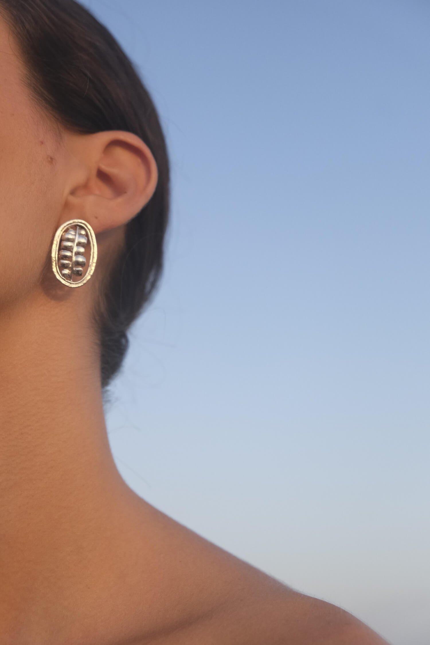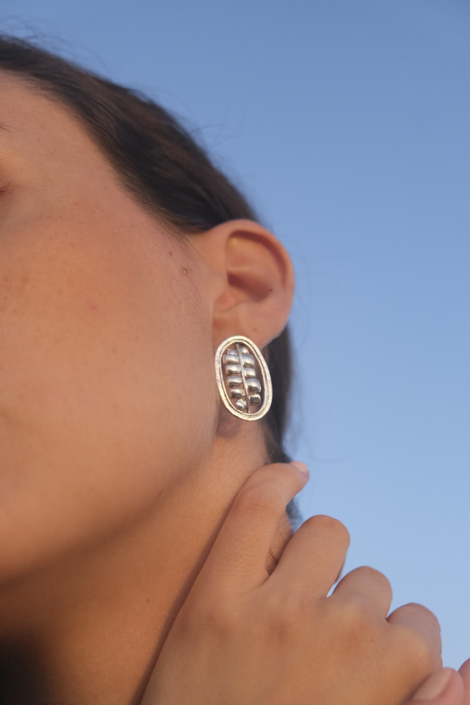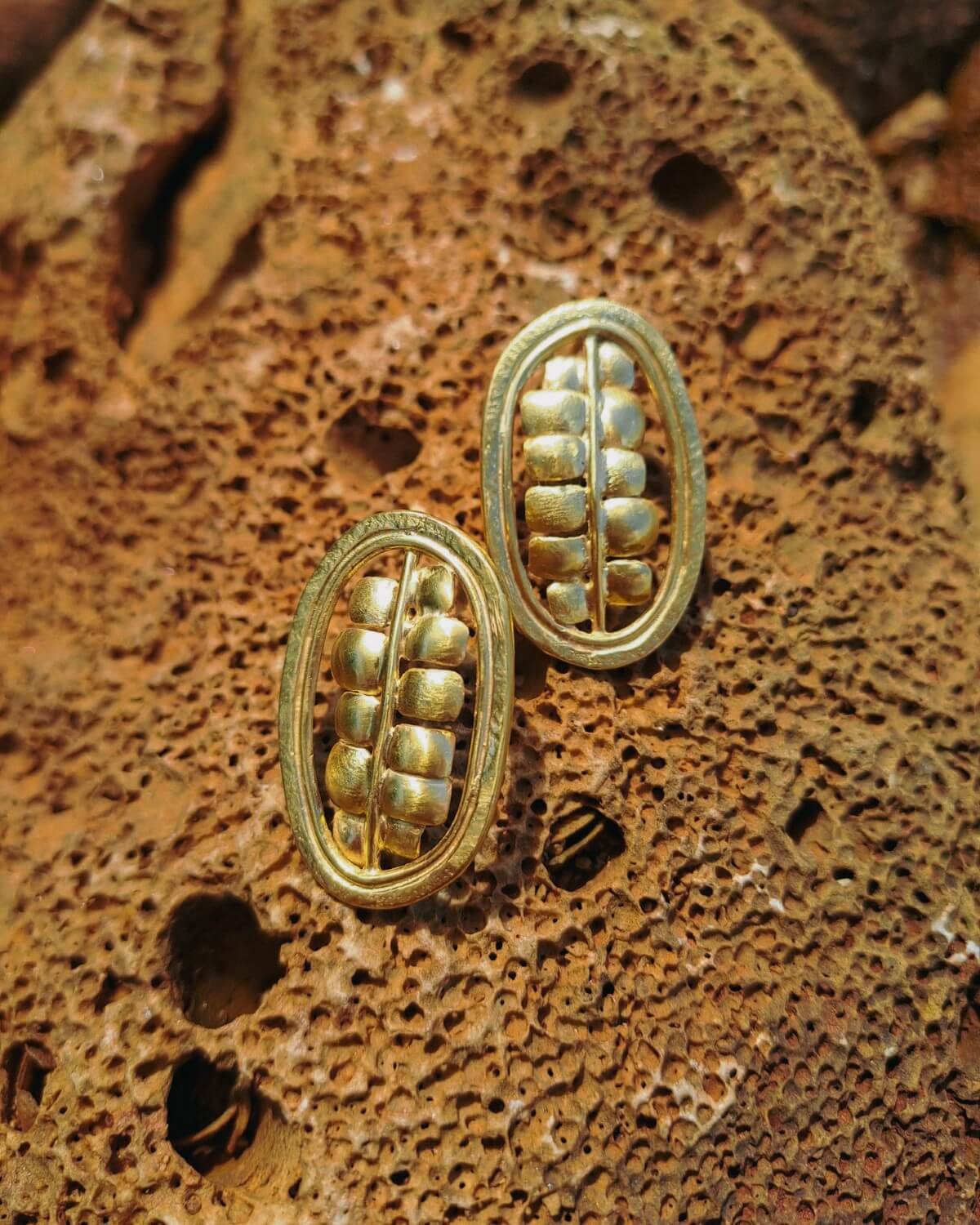 Pendientes orgánicos inspirados en la semilla del cacao.